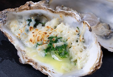 Cu un cuțit pentru stridii, deschide-le atent. Procesul e unul minuțios. Fii atent să nu verși lichidul la deschiderea stridiilor. Mută 2 stridii deschise într-o tavă. În fiecare, adaugă câte jumătate de linguriță de prima amestecătură. Cu o torță de bucătărie topește un pic untul. Adaugă parmezan ras în fiecare stridie și rumenește-l cu o flacără până prinde culoare.